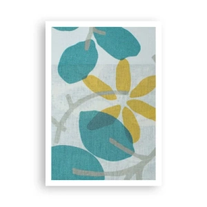 Pôster em moldura branca - Entre as folhas azuis - 70x100 cm