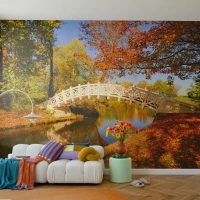 Papel de Parede Standard Eco - Na ponte branca dos suspiros - Paisagem, Parque, Ponte de madeira - 300x210 cm