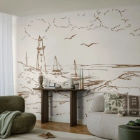Papel de Parede Standard Eco - Esboço das memórias do verão - Gráficos, Costa, Farol - 200x140 cm