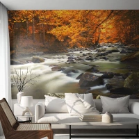 Papel de Parede Premium Canvas - Um riacho na floresta dourada - Paisagem, Floresta, Córrego da montanha - 250x175 cm