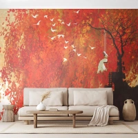 Papel de Parede Autocolante Deluxe Sticker - Adeus verão, até o ano que vem - Paisagem, Cegonha, Pássaros - 500x350 cm