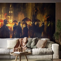 Papel de Parede Autocolante Deluxe Sticker - Os seguidores da chuva - Cidade, Pessoas, Guarda-chuva - 500x350 cm