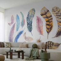 Papel de Parede Autocolante Deluxe Sticker - Leve, heterogéneo e multicolorido - Penas de pássaros, Pássaros, Gráficos - 250x175 cm