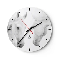 Relógio de parede - Relógio em vidro - Dois cavalos brancos em pé, um de frente para o outro, sobre um fundo branco - 30x30cm - Será amizade...? - Decoração de parede moderna para a sala de estar, cozinha e quarto ARTTOR