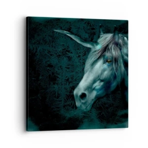 Quadro em tela - Um unicórnio mágico em uma floresta escura e misteriosa com cores fantásticas. - 70x50cm - Na floresta de conto de fadas - Decoração de parede moderna para a sala de estar e quarto ARTTOR