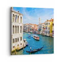 Quadro em vidro - Um canal em Veneza com gôndolas e barcos na água - 70x50cm - Tráfego único no mundo - Decoração de parede moderna para a sala de estar e quarto ARTTOR