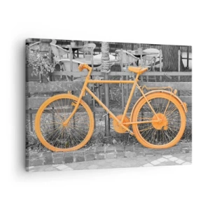 Quadro em vidro - Uma ilustração de uma bicicleta pintada de laranja sobre um fundo preto e branco. - 70x50cm - Vá, vou esperar aqui - Decoração de parede moderna para a sala de estar e quarto ARTTOR