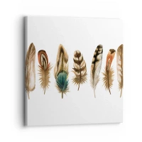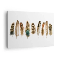 Quadro em tela - Motivo decorativo de uma coleção de penas diversas - 70x50cm - Variações de penas - Decoração de parede moderna para a sala de estar e quarto ARTTOR