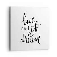 Quadro em tela - Uma pintura minimalista com as palavras "viva com um sonho" em preto sobre fundo branco. - 70x50cm - Of course - Decoração de parede moderna para a sala de estar e quarto ARTTOR