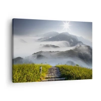 Quadro em tela - Escadas de pedra que levam através das montanhas envoltas na névoa da manhã - 70x50cm - Em direcção às nuvens - Decoração de parede moderna para a sala de estar e quarto ARTTOR