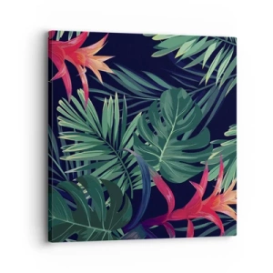 Quadro em tela - Folhas e flores tropicais em um fundo escuro - 70x50cm - Queimar em verde - Decoração de parede moderna para a sala de estar e quarto ARTTOR