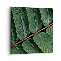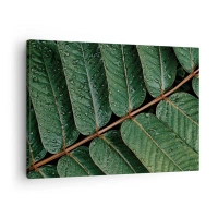 Quadro em tela - Foto macro de folhas verdes com gotas de orvalho - 70x50cm - Num ritmo verde - Decoração de parede moderna para a sala de estar e quarto ARTTOR