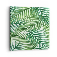 Quadro em tela - Folhas de palmeira tropical verde sobre fundo claro - 70x50cm - Sob as folhas verdes - Decoração de parede moderna para a sala de estar e quarto ARTTOR