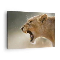Quadro em tela - Retrato de uma leoa rugindo em luz natural - 70x50cm - Tente não ouvir - Decoração de parede moderna para a sala de estar e quarto ARTTOR