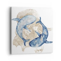 Quadro em tela - Baleias azuis abstratas em um fundo claro - 70x50cm - Amizade ou amor? - Decoração de parede moderna para a sala de estar e quarto ARTTOR
