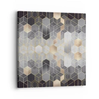 Quadro em tela - Padrão geométrico em tons dourados - 70x50cm - Composição do diamante - Decoração de parede moderna para a sala de estar e quarto ARTTOR
