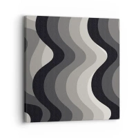 Quadro em tela - Padrões ondulados em preto e branco em tons de cinza - 70x50cm - Onda após onda - Decoração de parede moderna para a sala de estar e quarto ARTTOR