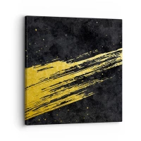 Quadro em vidro - Um pincel dourado sobre um fundo preto em uma forma dinâmica e abstrata - 70x50cm - Salto para o hiperespaço - Decoração de parede moderna para a sala de estar e quarto ARTTOR
