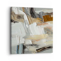 Quadro em tela - Abstração textural em tons de terra e branco - 70x50cm - Camadas coloridas - Decoração de parede moderna para a sala de estar e quarto ARTTOR