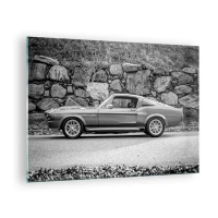 Quadro em vidro - Um carro clássico contra uma parede de pedra - 70x50cm - Lenda dos anos 60 - Decoração de parede moderna para a sala de estar e quarto ARTTOR