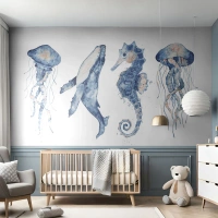 Amostra de Papel de Parede Standard Eco - Maravilhas do mar - Animais marinhos, Cavalo marinho, Medusa - 100x30 cm